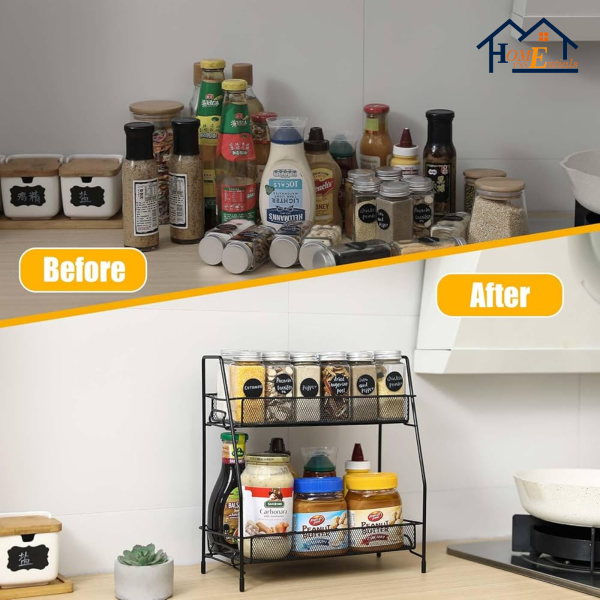 Keep your home organized with this durable two-tier storage rack, designed to maximize space and provide versatile storage solutions.