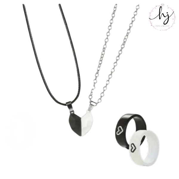 This set includes two stylish chains and matching rings, designed for couples to express their bond.