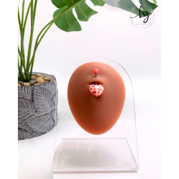 A heart-patterned navel ring designed with intricate detailing for a stylish and elegant touch.