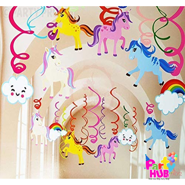 Complete unicorn party decoration set designed to create a magical and colorful celebration atmosphere.